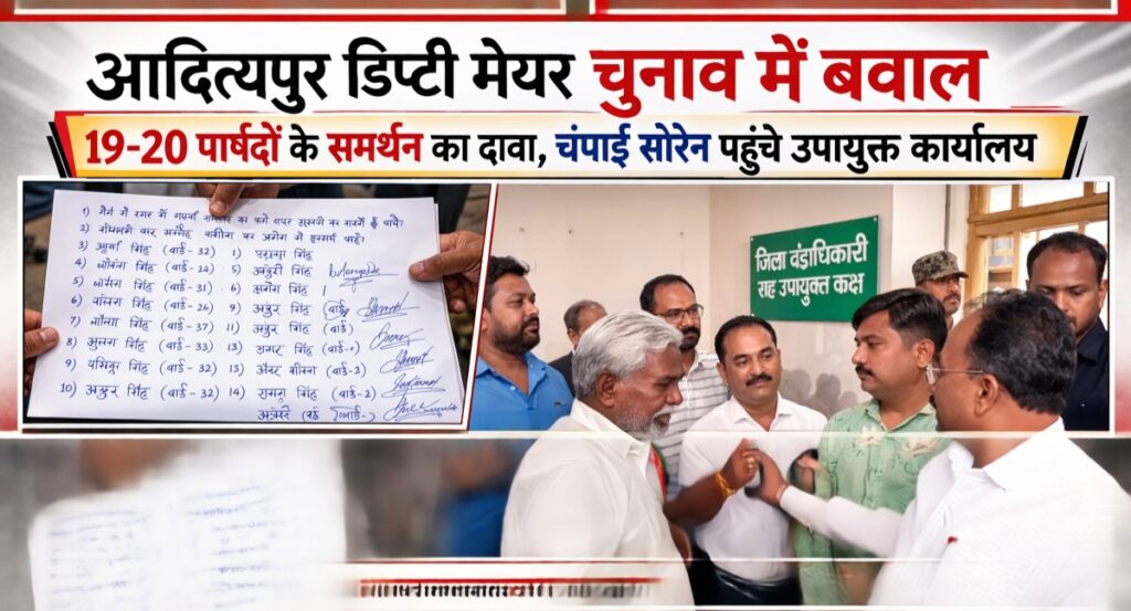 सरायकेला-खरसावां / आदित्यपुर:आदित्यपुर नगर निगम के डिप्टी मेयर चुनाव को लेकर जारी विवाद अब नया मोड़ लेता नजर आ रहा है। डिप्टी मेयर पद की उम्मीदवार अर्चना सिंह ने चुनाव प्रक्रिया में गड़बड़ी का आरोप लगाते हुए लगभग 20 पार्षदों के समर्थन के साथ अदालत जाने की तैयारी शुरू कर दी है।एक वोट से जीते अंकुर सिंहडिप्टी मेयर पद के लिए हुए चुनाव में अंकुर सिंह ने बेहद करीबी मुकाबले में जीत दर्ज की थी। मतगणना के बाद घोषित परिणाम में अंकुर सिंह को 18 वोट मिले, जबकि अर्चना सिंह को 17 वोट प्राप्त हुए। इस तरह अंकुर सिंह ने मात्र एक वोट के अंतर से जीत हासिल की।मतदान प्रक्रिया पर उठे सवालचुनाव परिणाम घोषित होने के बाद कई पार्षदों ने मतदान प्रक्रिया पर सवाल उठाए। पार्षदों का आरोप है कि मतदान के दौरान गड़बड़ी हुई, जिससे कुछ पार्षदों को अपने मताधिकार का सही तरीके से प्रयोग करने में परेशानी हुई।चंपाई सोरेन पहुंचे उपायुक्त कार्यालयमामले को लेकर झारखंड के पूर्व मुख्यमंत्री सह विधायक चंपाई सोरेन भी सक्रिय नजर आए। वे उपायुक्त कार्यालय पहुंचे और अर्चना सिंह के समर्थन में 19 पार्षदों का समर्थन होने का दावा किया।20 पार्षदों के साथ कोर्ट जाने की तैयारीअब इस पूरे विवाद में नया मोड़ तब आया जब अर्चना सिंह ने दावा किया कि उनके साथ करीब 20 पार्षदों का समर्थन है। बताया जा रहा है कि अर्चना सिंह इन पार्षदों के साथ मिलकर चुनाव परिणाम को चुनौती देने के लिए कोर्ट का रुख कर सकती हैं।फिलहाल आदित्यपुर नगर निगम के डिप्टी मेयर चुनाव को लेकर राजनीतिक सरगर्मी तेज हो गई है और अब सभी की नजर इस मामले में आगे होने वाली कानूनी प्रक्रिया पर टिकी है।