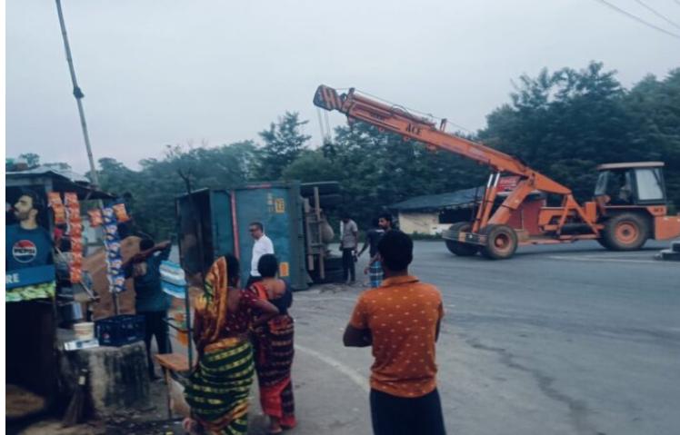 ओवरलोड बालू लदा ट्रक पलटा। बड़ा खतरा टला