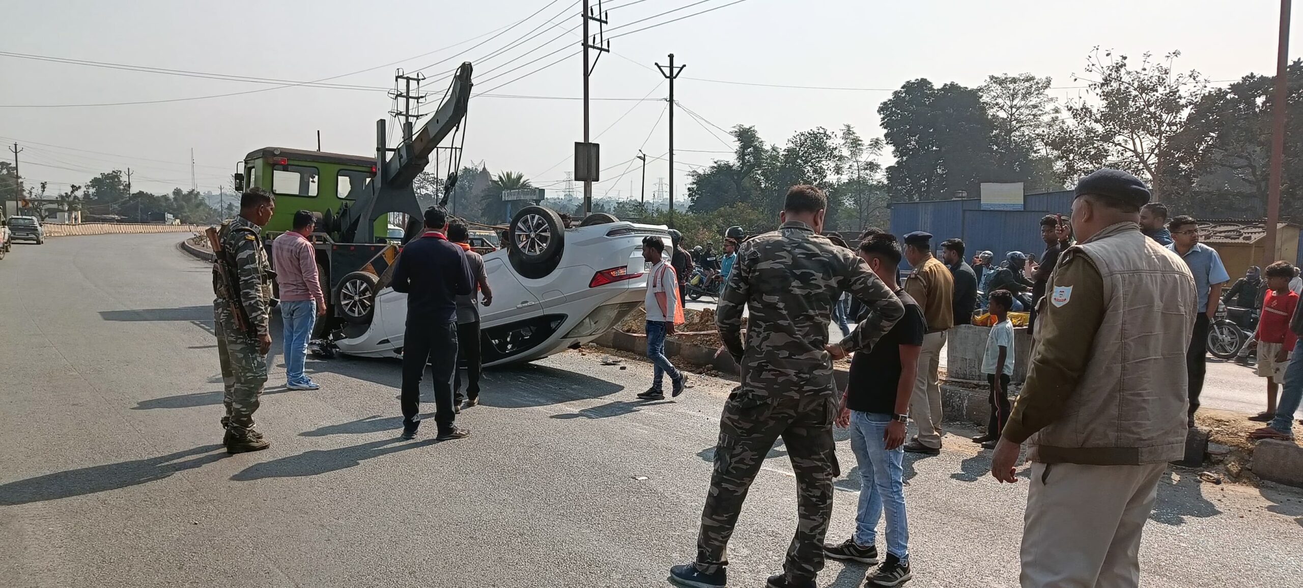 सरायकेला खरसांवा जिले के कांड्रा थानांतर्गत पिंड्राबेरा स्थित टाटा कांड्रा मुख्य मार्ग के पास एक तेज रफ्तार कार अनियंत्रित होकर पलट गई। हालांकि गनीमत यह रही कि सड़क खाली रहने के वजह से कोई भी यात्री इसके चपेट में नही आया वरना किसी भी बड़ी घटना से इंकार नहीं किया जा सकता था। प्रत्यक्षदर्शियों के अनुसार कांड्रा से एक कार काफी तेज रफ्तार से आ रही थी। रफ्तार तेज होने के वजह से वह गाड़ी पर नियंत्रण नहीं रख पाया जिससे गाड़ी बीच सड़क पर ही पलट गई। हालांकि सड़क खाली थी तो किसी प्रकार की कोई भी जान माल की हानि नही हुई। मामले की जानकारी पुलिस को दी गई तो पुलिस ने क्रेन के माध्यम से गाड़ी को रास्ते से हटाकर रास्ते को खुलवाया