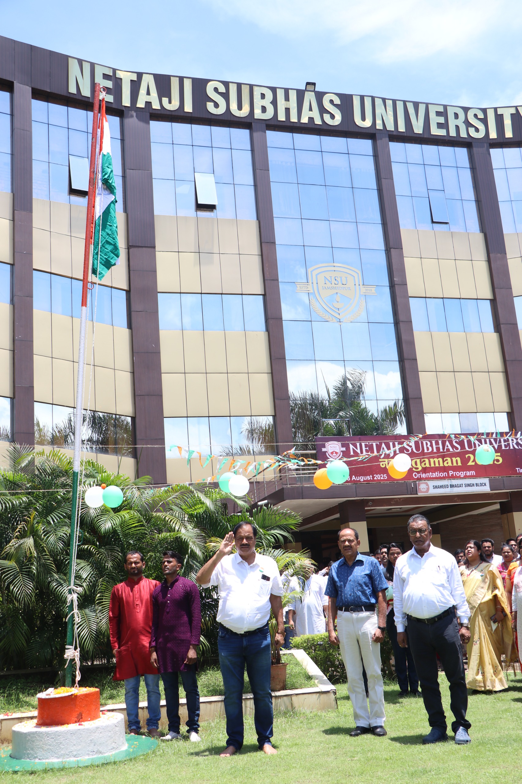 नेताजी सुभाष विश्वविद्यालय ने 15 अगस्त, 2025 को भारत का 79वाँ स्वतंत्रता दिवस बड़े उत्साह, गर्व और देशभक्ति की गहरी भावना के साथ मनाया। विश्वविद्यालय के प्रशासनिक और शैक्षणिक पदाधिकारी, आमंत्रित गणमान्य अतिथि, संकाय सदस्य, शिक्षकेत्तर और गैर शिक्षकेत्तर कर्मचारी और बड़ी संख्या में विश्वविद्यालय और नेताजी सुभाष पब्लिक स्कूल के विद्यार्थी इस समारोह में शामिल हुए।