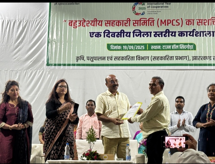 टाउन हॉल, सिदगोड़ा में बहुउद्देशीय सहकारी समितियों के सशक्तिकरण को लेकर एक दिवसीय कार्यशाला का आयोजन किया गया। जिला सहकारिता पदाधिकारी-सह- सचिव सिद्धो-कान्हो कृषि एवं वनोपज जिला सहकारी संघ लि. कार्यालय के तत्वाधान में आयोजित कार्यशाला में अपर उपायुक्त श्री भगीरथ प्रसाद मुख्य अतिथि के रूप में शामिल हुए । कार्यशाला में विषय प्रवेश कराते हुए जिला सहकारिता पदाधिकारी-सह- सचिव सिद्धो-कान्हो कृषि एवं वनोपज जिला सहकारी संघ लिमिटेड श्रीमती आशा टोप्पो ने सिडकोफेड की गतिविधियों, संभावनाएं एवं गठन के उद्देश्य पर प्रकाश डाला।